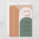 Plain white envelopes are included with paper invitations and will come to fit the invitation size you select. If you don’t need the envelopes, you may choose to not receive them by selecting the dropdown below "Envelopes" and choosing "None." If you’d like to have a design on your envelopes, you can browse all of these available envelopes to find the design that complements your Modern Arch Wedding Invitation I Earth Tones.