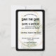 Announce your wedding in style with this luxurious black and gold Save the Date card. Featuring a geometric gold frame, soft olive greenery, and a bold modern font, this elegant card is perfect for formal weddings, black-tie celebrations, and stylish garden ceremonies. The arched shape adds a premium touch, and all text is fully customizable. Pair with the full suite for a cohesive wedding stationery set.