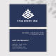 A minimal business card suitable for an architect, engineer, builder & more. The modern design features a white pyramid logo on the front with a navy background and space for your business name. On the back your name, contact information, & the option to add a tagline or services offered.