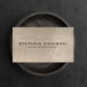 This modern business card design features a gray-beige woodgrain background with an architectural typeface treatment that appears to be carved into the wood. Use the typeface to create your special business or personal branding. © 1201AM Design Studio | www.1201am.com
