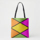 Freshen up your wardrobe with this summer tote bag featuring a playful argyle pattern in bright shades of yellow, orange, green, and pink. This design is minimalistic and modern, and it will complement a variety of summer outfits.