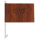 Modern Aries Zodiac Symbol in Mahogany like print Car Flag