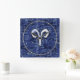 Modern Aries Zodiac Symbol Navy Blue Digital Camo Square Wall Clock