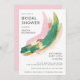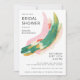 This contemporary style bridal shower invitation design is a miniature work of art with it's abstract paint strokes in a colorful combination of pink, green, red, gold, and beige. Lots of white space in the design give it a minimalist appeal. Personalize the text template with your event details.