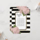 These Table Assignment seating cards can be used on each table or in the entry to your reception. They are an inexpensive way to add glitz and glam to your reception! These Table number cards can be framed, place on a holder or used in many ways to direct your guests to their table seating for your formal wedding reception, bridal shower or formal business event. Simply change the table number and guest list for each one and place it in your shopping cart. Shown here with seating for 10 per table, you can adjust the list to your needs and simply drag and center the list when your'e done by using the "customize" feature. This design has a hand a painted floral design with blush pink hydrangea blossoms. These flowers grew in Audrey Jeanne's gardens and were picked fresh to paint from life. A bold black and white, wide striped background is paired with an art deco, notched corner style frame that is outlined in a faux gold glitter. Artwork and graphic design copyright, Audrey Jeanne Roberts, all rights reserved.