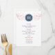 This modern "Art Deco" style wedding menu is perfect for the modern wedding. Beautiful swirls and a monogram are featured on this menu. This menu is in a pink and light navy blue. Gatsby Style