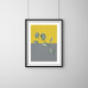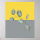 Modern art design features eucalyptus leaves on bold yellow and gray colorblock background