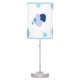 The lamp looks exactly like the picture, bright and colorful. The lamp shade is plastic not what I expected, however I love it! The printing is clear and the name can easily be read.