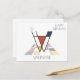 Stately, funny, artistic monogram. Here is the letter "V". Neoplasticism style, or De Stijl, line and color artistic decoration, the funny bird sits on the letter. The field of art is located under the letter. The template name "VALENTINE" is located under the image. Happy Birthday! text near the image. You can change or delete all the texts, and you can change the image. Unique, one-of-a-kind postcard for a birthday or another event. Feel free to use the "Edit Design" or "Personalize" (as the case may be) button of the blue color to change the font, color, or position of the template text. Be creative, customize, buy one, and be happy!