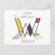 Polished, funny, artistic monogram. Here is the letter "W". Neoplasticism style, or De Stijl, line and color artistic decoration, the funny bird sits on the letter. The field of art is located under the letter. The template name "WILLIAM" is located under the image. Happy Birthday! text near the image. You can change or delete all the texts, and you can change the image. Unique, one-of-a-kind postcard for a birthday or another event. Feel free to use the "Edit Design" or "Personalize" (as the case may be) button of the blue color to change the font, color, or position of the template text. Be creative, customize, buy one, and be happy!