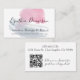 Modern and artistic business card features watercolor pink and blue splash front graphic with customizable text and a custom QR code for your social media or website link. Perfect for artists, interior designers, modern home décor showrooms and more.