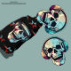 Modern attractive graphic artwork on black background for teen. The artwork featuring a big attractive skull in gradient color with star pattern in the same color tone.
