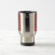 A modern aurora red and white chevron pattern travel mug personalized with a monogrammed square on the front. Personalize by adding your name and contact information to the back.