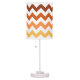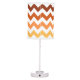 This colorful table lamp features a modern and trendy chevron pattern in an autumnal orange color scheme on a white background.