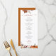 Modern rustic autumn fall rust burnt orange terracotta watercolor botanical flowers foliage leaves and pumpkin elegant script custom menu card.