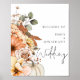 Modern Autumn Florals Welcome to Wedding. Bordering the left hand side, elegant autumnal flowers on a white background, with Wedding in an elegant set script. Easily personalize the rest of the text.