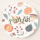 Colorful Autumn print with "grateful" message and personalized with initials on this unique round coaster made of sandstone; 4.25" diameter .25" thick. Change initials and text using the easy Template provided. Made to keep your tables scratch-and-moisture-free, the sandstone coasters have a cork backing, so you can use them on any surface. See "About This Product" at side for more information.