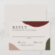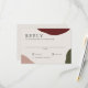 An artistically styled wedding response card that conveys simple elegance, this design has a rich autumn color palette in burgundy wine red, terra-cotta and hunter green abstract shapes along the edges of the design. An ecru background blends well with the fall colors. The type face is crisp and elegant in its simplicity. Personalize with your required RSVP response date.