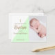 Modern Baby Boy Green Photo Baptism Thank You Postcard