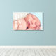 Display your newborn's arrival details in style with this modern birth stats canvas featuring a full photo background with a subtle blue overlay. The design showcases the baby's name, birth date, time, weight, and length in clean, contemporary typography. A beautiful keepsake for a nursery wall or a heartfelt gift for new parents. Upload your favorite newborn photo and customize all birth details.