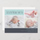 Announce your baby boy’s arrival with this contemporary photo collage birth announcement card. Featuring three photo slots for your favorite newborn moments and minimalist typography in soft blue and grey, this design is both timeless and elegant. Personalize with your baby’s name, birth details, and a heartfelt message to thank loved ones for their kind wishes.