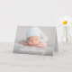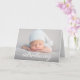 Customize the front of the card with a cherished photo of your baby, capturing their adorable face and creating a lasting memory. On the back, include a special message along with essential birth details such as the birth date, birth stats, baby's name, and parents' names. This personalization adds a unique and sentimental touch to the card, making it a cherished keepsake for family and friends.
