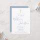 Modern Baptism Christening Gold Cross Dusty Blue Invitation