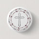 Give this button as a favor to guests who attend your child's baptism or confirmation. With a simple gray cross inside a heart and ribbon wreath. It's modern, and stylish and perfect for religious events of the Christian faith.