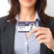 A modern staff badge with a professional layout featuring a barcode under the employee photo. Ideal as an employee ID for your business or workplace. Add your employee's photograph, name and occupation, as well as your own barcode. Optional information such as a badge ID number or expiry date can be included or left blank.