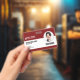A modern staff badge with a professional layout featuring a barcode under the employee photo. Ideal as an employee ID for your business or workplace. Add your employee's photograph, name and occupation, as well as your own barcode. Optional information such as a badge ID number or expiry date can be included or left blank.