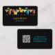 Make a lasting impression with this stylish bartender business card featuring a row of colorful cocktail illustrations on a sleek black background. Perfect for mixologists, event bartenders or bar owners, this modern card combines bold design with practical contact info and a scannable QR code. Customizable name and details ensure your card is as unique and professional as you are. Ideal for networking at events, gigs or private parties.