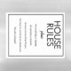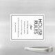 Display your 5 most important house rules to serve as visual reminders to your guests. Easily customize the template with your information. Font type, size, and color can all be changed to fit your needs. The background color can also be customized to match your decor.