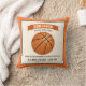 Baby room birth announcement pillow featuring modern typography on a beige background with orange border. Add all your lovely details on this easy-to-use template to make your own unique birth stats pillow.
