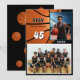 Modern Basketball Player Team Photo Memory Mate. Celebrate your basketball star or entire team with this modern and dynamic photo card! Featuring a bold basketball graphic background, this design allows for full personalization with a player's name, team name, and jersey number. Showcase your favorite player with a striking individual portrait and capture team spirit with a group photo. Perfect for game day invitations, end-of-season party announcements, team awards, or a cherished keepsake to remember a fantastic season. Easy to customize for any basketball event!