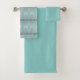 Stylish towel set in turquoise and grey accents, the turquoise pattern is removable or it can be switched to any color. Add text to personalize.