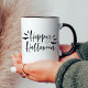 Enjoy your favorite hot beverage in style with our Halloween coffee mug featuring “Happy Halloween” in a hand-lettered black script surrounded by flying bats. Customize by changing the color of the inside and handle to match your style. This festive mug makes a great Halloween gift or a fun seasonal treat to keep for yourself. Perfect for coffee, tea, or hot cocoa all spooky season long.