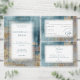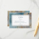 This wedding reception card design features a blue and gold abstract beach and water background, with text in a soft sea spray blurred text box. Modern and unique, it's perfect for a beach or waterside wedding. Created by Simply Farmhouse Press, it's part of the Modern Beach Abstract Wedding Suite.