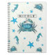Modern Beach Blue Crab Starfish Seahorse Sparkle Notebook