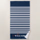 Modern striped beach towel with a customizable family monogram. Available in different colors. Check out our store for more beach towel designs.