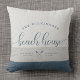 Modern Beach House Family Name Brush Script Blue Throw Pillow
