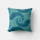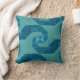Modern Beach Teal Turquoise Wave Pattern and Wood Throw Pillow