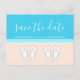 Announce the joyful news of your engagement and upcoming beach wedding with unique custom monogram save the date postcards. All wording on this invitation template is simple to personalize, including script on front which can be changed to "Save Our Date." (IMAGE PLACEMENT TIP: An easy way to center a photo exactly how you want is to crop it before uploading to the Zazzle website.) The pastel peach and turquoise blue design features bright white typography and cute monogrammed flip flops on an abstract modern minimalist beach. The handwritten style script calligraphy is meant to resemble sky writing above the ocean. This stylish tropical engagement announcement card is an elegant way to inform family and friends of your upcoming destination wedding celebration in paradise. Congratulations to the bride and groom!