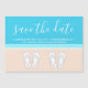 Announce the joyful news of your engagement and upcoming beach wedding with unique custom monogram save the date magnets. All wording on this template is simple to personalize, including script on front which can be changed to "Save Our Date." The magnetic back makes them easy for friends and family to display. (IMAGE PLACEMENT TIP: An easy way to center a photo exactly how you want is to crop it before uploading to the Zazzle website.) The pastel peach and turquoise blue design features bright white typography and cute monogrammed flip flops on an abstract modern minimalist beach. The handwritten style script calligraphy is meant to resemble sky writing above the ocean. This stylish tropical engagement announcement card is an elegant way to inform family and friends of your upcoming destination wedding celebration in paradise. Congratulations to the bride and groom!