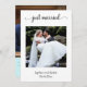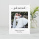 Introducing our stunning Wedding Announcement, a perfect way to share the joyous news of your special day with your loved ones. This announcement features an elegant design with a white front and a rich burgundy back, creating a striking contrast that beautifully showcases your wedding details. The front of the announcement proudly displays the words "Just Married" in a stylish font, accompanied by a space for a cherished photo capturing the essence of your wedding day. Below the photo, the couple's names and wedding date are elegantly displayed, allowing your friends and family to celebrate this momentous occasion with you.