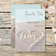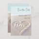 This wedding save the date card design features a unique heart with the word love etched in the sand of a beach with the soft tide and blue sky in the background. The front has a vellum appearance. So unique! It's part of the Modern Beach with Heart Wedding Suite created by Simply Farmhouse Press.