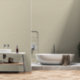 A modern beige wallpaper with a linen look texture for a home office.