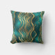 Modern Beige Marble Swirl Turquoise Teal Blue Throw Pillow