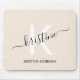 Modern beige script monogram name mouse pad