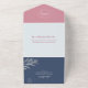 Modern Berry and Blue Wedding with Perforated RSVP All In One Invitation