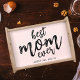 Modern Best Mom Ever Kids Name Script | Black Serving Tray